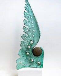 Знаковими експонатами виставки є роботи художника, створені під час гарячої фази війни за останні три роки і були зроблені навесні 22-го року із гільз, зібраних з-під Ірпеня та Бучі, після звільнення Київщини від російської окупації.