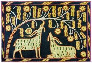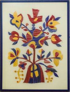 Виставкова експозиція презентує близько 100 робіт, серед яких твори художнього текстилю – килими, гобелени, батик, вибійка, декоративні тканини, а також панно та тарелі, виконані в техніці мозаїки соломою, писанки.